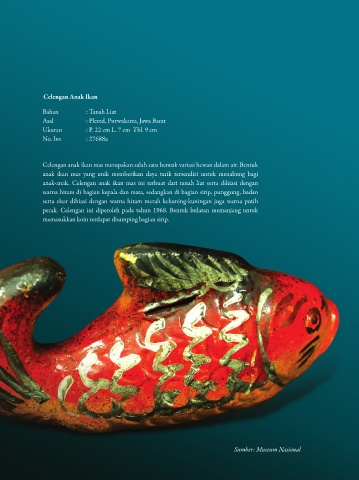 anak-anak. Celengan anak ikan mas ini terbuat dari tanah liat serta dihiasi dengan