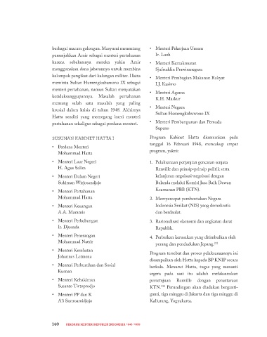 SUSUNAN KABINET HATTA I Program Kabinet Hatta diumumkan pada rapat bersama staf militer di Gedung Agung
