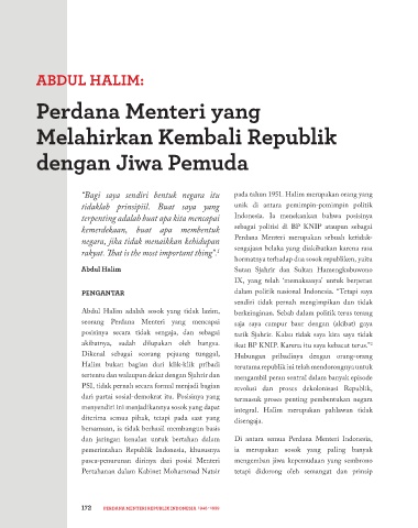 dan jaringan kenalan untuk bertahan dalam Di antara semua Perdana Menteri Indonesia, kesatuan, dengan kata lain mempersatukan kembali sosok Halim pada peranan dia dalam