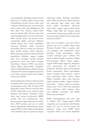 menegaskan bahwa ia saat itu tidak berada dalam (KNIP) sebagai badan yang membantu dalam
