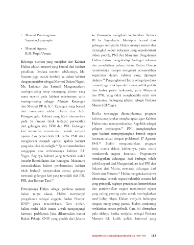 dan perdana menterinya adalah Mohammad Yogya. Susunan Kabinet Halim: golongan non-partai Halim mampu masuk dan