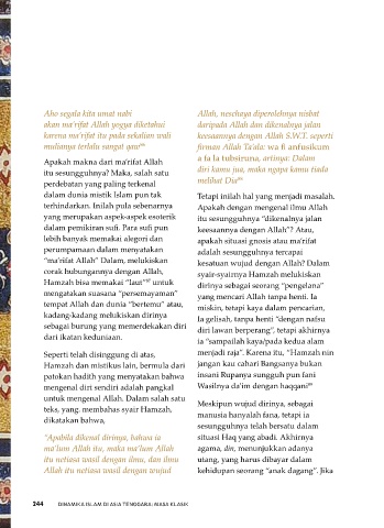 terhindarkan. Inilah pula sebenarnya Apakah dengan mengenal ilmu Allah dipandangnya, kerana, pada ahli hakikat Dalam tulisan-tulisannya, Hamzah