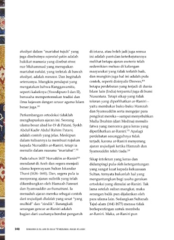 Pada tahun 1637 Nuruddin ar-Raniri Sikap intoleran yang keras dan Nasara”. Wujudiyah yang benar, yang pada puncak perkembangannya. Dan,