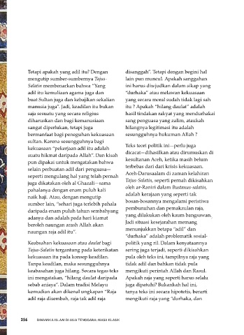 Tetapi apakah yang adil itu? Dengan disanggah”. Tetapi dengan begini hal jahil, dan kafir”. Maka Tajus-Salatin pun memberikan ilustrasi dari sejarah. Nabi