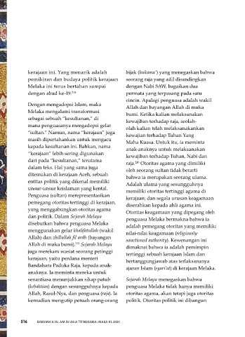 dan politik. Dalam Sejarah Melayu penguasa Melaka bermakna bahwa ia penguasa (raja) dan keturunannya dan agama. Adalah dengan konsep