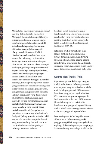bacaan dari naskah aslinya, baik Agama dan Tradisi Tulis dari masyarakat Nusantara sehingga adanya upaya adaptasi masyarakat