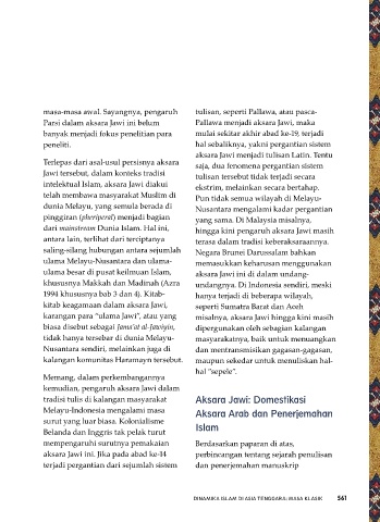 aksaranya menggunakan aksara Jawi. tulisan Arab tersebut untuk menuliskan 1994 khususnya bab 3 dan 4). Kitab- hanya terjadi di beberapa wilayah,