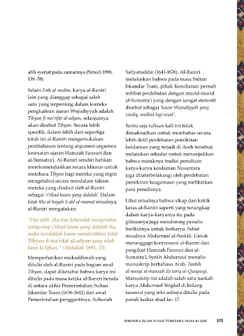 karya-karya mistik Hamzah Fansuri Menanggapi pandangan-pandangan al-Sumatra’i. Al-Raniri sendiri bahkan bahwa maraknya tradisi penulisan