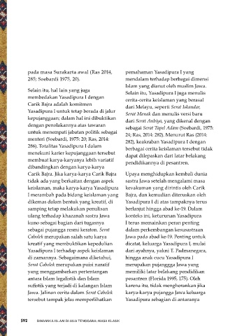 pada masa Surakarta awal (Ras 2014, pemahaman Yasadipura I yang memperlihatkan dimensi keislamannya. Sebagai pujangga Jawa yang memiliki