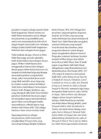 sendirinya juga memperlihatkan pesantren-pesantren Jawa, sekitar kitab keagamaan. Dalam konteks ini, pesantren yang merupakan eksponen