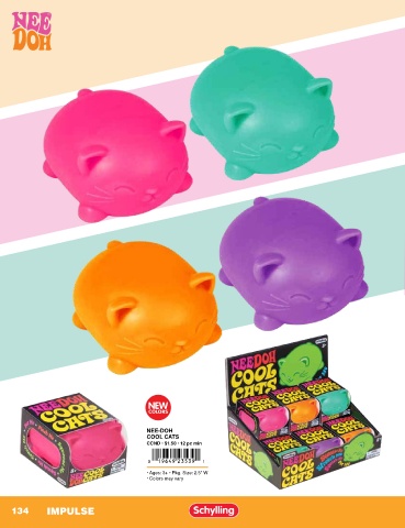 NEE-DOH COOL CATS CCND • $1.50 • 12 pc min • Ages: 3+ • Pkg. Size: 2.5” W • Colors may vary 134 IMPULSE