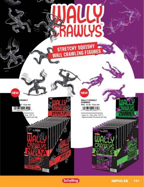 WALLY CRAWLY WALLY CRAWLY NINJAS ZOMBIES NWC • $1.50 • 12 pc min ZWC • $1.50 • 12 pc min • Ages: 5+ • Pkg. Size: 7.25” H • Ages: 5+ • Pkg. Size: 7.25” H • Approximately 24 pieces per bag • Approximately 24 pieces per bag IMPULSE 141