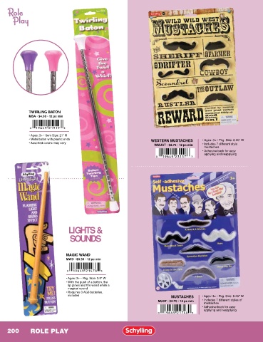 • Metal baton with plastic ends WESTERN MUSTACHES • Ages: 3+ • Pkg. Size: 8.25" W