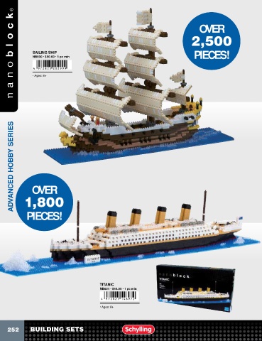 OVER 2,500 SAILING SHIP PIECES! NB030 • $50.00 • 1 pc min • Ages: 8+ ADVANCED HOBBY SERIES OVER 1,800 PIECES! TITANIC NB021 • $40.00 • 1 pc min • Ages: 8+ 252 BUILDING SETS