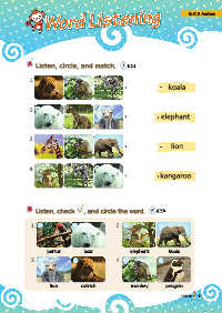 1 koala 2 elephant 3 lion 4 kangaroo 1 2 p paarrrroott b beeaarr e elleepphhaanntt k kooaallaa 3 4 l liioonn o ossttrriicchh m moonnkkeeyy p peenngguuiinn Unit 03 17