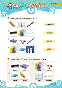 1 scissors 2 eraser 3 pencil 4 ruler 1 2 stapler b booookk c crraayyoonn s scciissssoorrss 3 4 p peenncciill e erraasseerr r ruulleerr n nootteebbooookk Unit 01 5