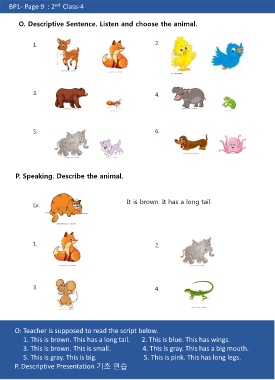 1. This is brown. This has a long tail. 2. This is blue. This has wings.