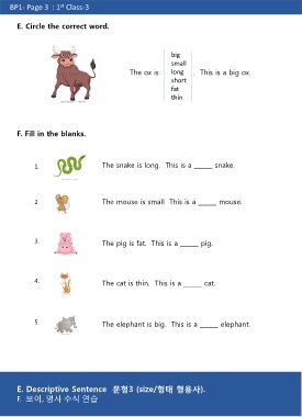 E. Descriptive Sentence 문형3 (size/형태 형용사).