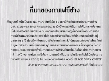กำแฟขี้ชะมดมำก่อนแล้ว เขำจึงไปทดลองท ำกำแฟขี้ชะมดที่ประเทศเอธิโอเปียอยู่