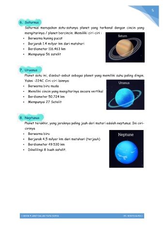 mengitarinya / planet bercincin. Memiliki ciri-ciri :
