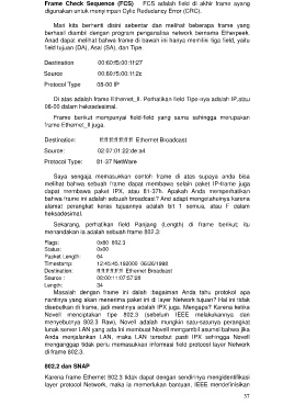 Frame Check Sequence (FCS) FCS adalah field di akhir frame ayang