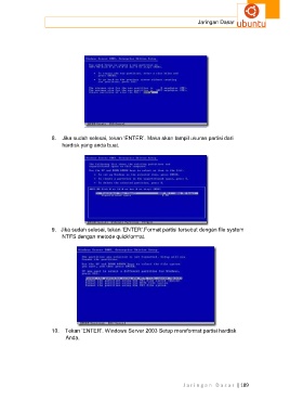 10. Tekan ‘ENTER’. Windows Server 2003 Setup memformat partisi hardisk