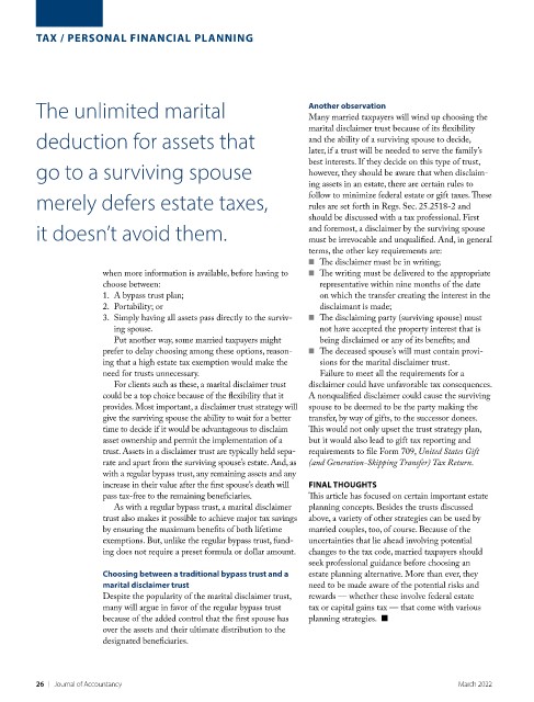 3. Simply having all assets pass directly to the surviv- ■ The disclaiming party (surviving spouse) must