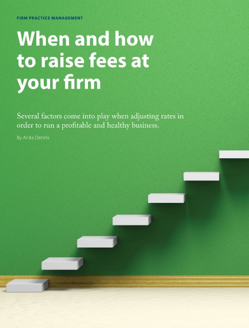 FIRM PRACTICE MANAGEMENT When and how to raise fees at your firm Several factors come into play when adjusting rates in order to run a profitable and healthy business. By Anita Dennis
