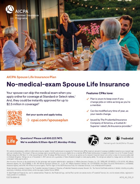 Insurance Agency; and in NY, AIS Affinity Insurance Agency. The Plan Agent of the AICPA Insurance Trust, Aon Insurance Services, is not affiliated with Prudential.