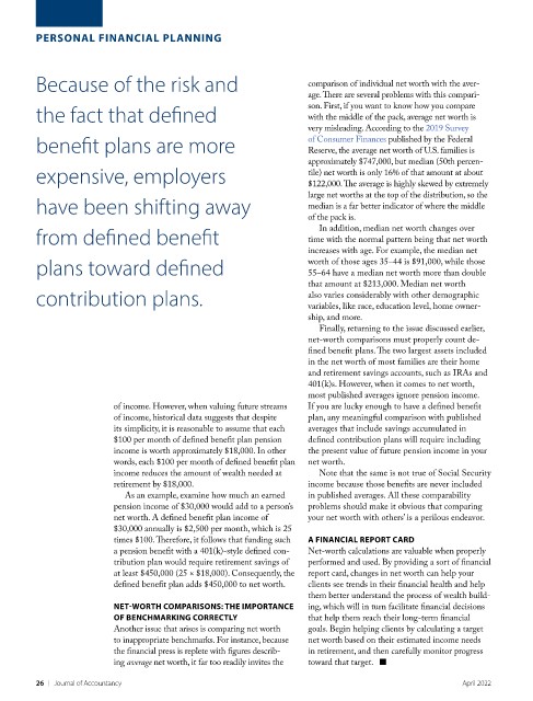 a pension benefit with a 401(k)-style defined con- Net-worth calculations are valuable when properly