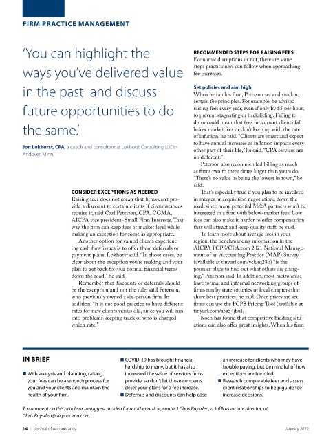 you and your clients and maintain the deter your plans for a fee increase. client relationships to help guide fee