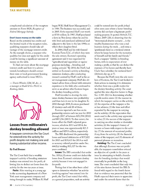 interest credit and how it is admin- raising animals.” By 2010, the Huffs had expenses of his horses and thereby have