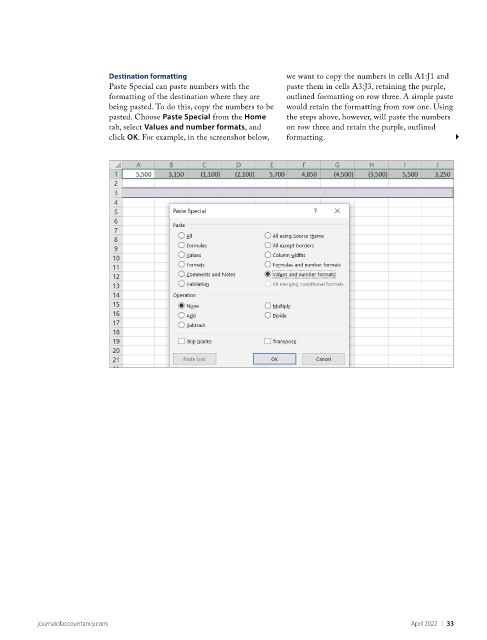 tab, select Values and number formats, and on row three and retain the purple, outlined
