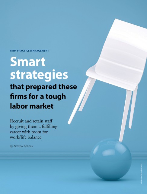 FIRM PRACTICE MANAGEMENT Smart strategies that prepared these firms for a tough labor market Recruit and retain staff by giving them a fulfilling career with room for work/life balance. By Andrew Kenney IMAGE BY AKINBOSTANCI/ISTOCK