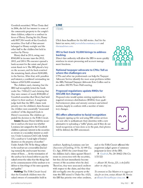 IMAGES BY YURIY ALTUKHOV/ISTOCK at the commencement of the usufruct or to owners of the securities when he died. — Alistair M. Nevius, J.D., is the JofA’s