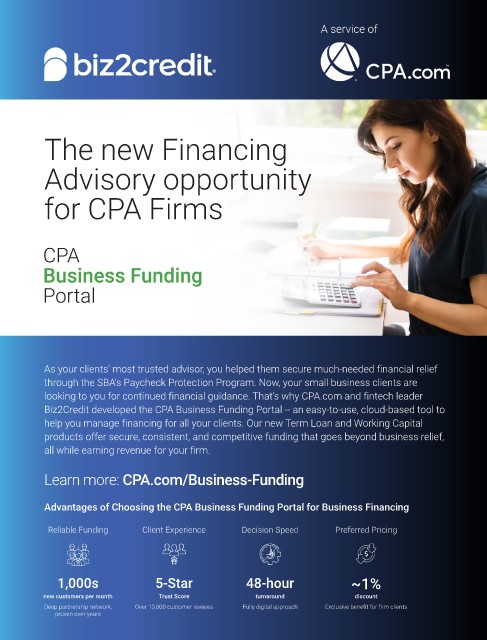 Biz2Credit developed the CPA Business Funding Portal -- an easy-to-use, cloud-based tool to