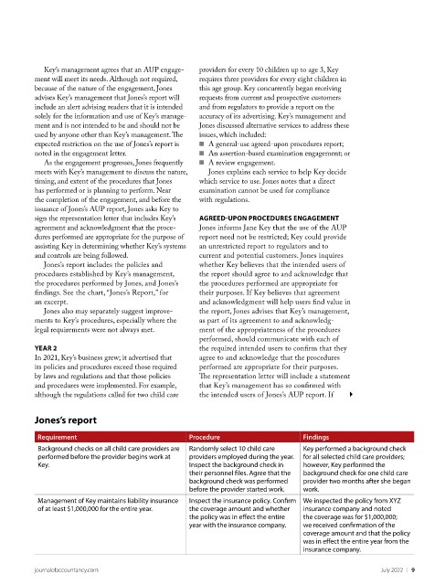 although the regulations called for two child care the intended users of Jones’s AUP report. If