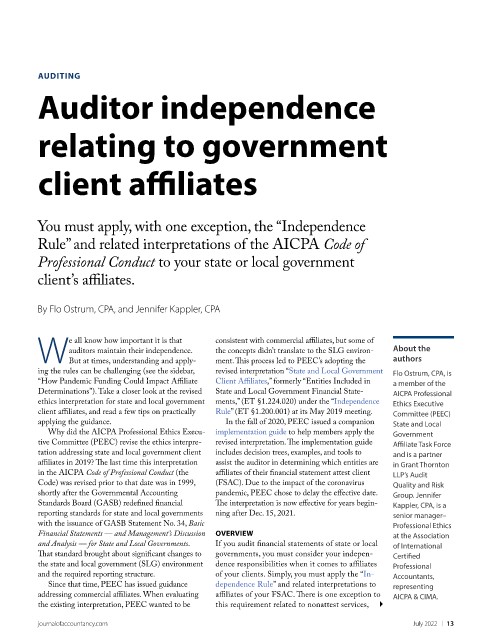 in the AICPA Code of Professional Conduct (the affiliates of their financial statement attest client LLP’s Audit