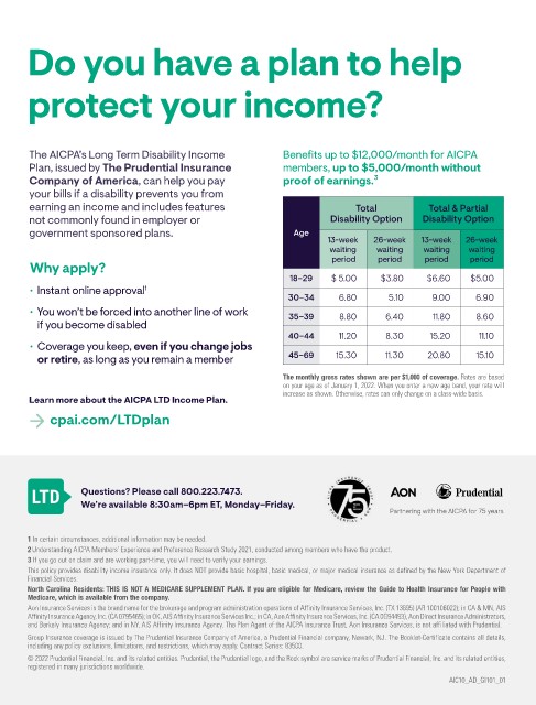 The AICPA’s Long Term Disability Income Benefits up to $12,000/month for AICPA