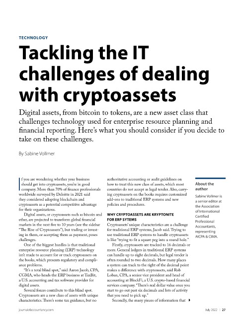ing in them, or accepting them as payment, poses use traditional ERP systems to handle cryptoassets AICPA & CIMA.