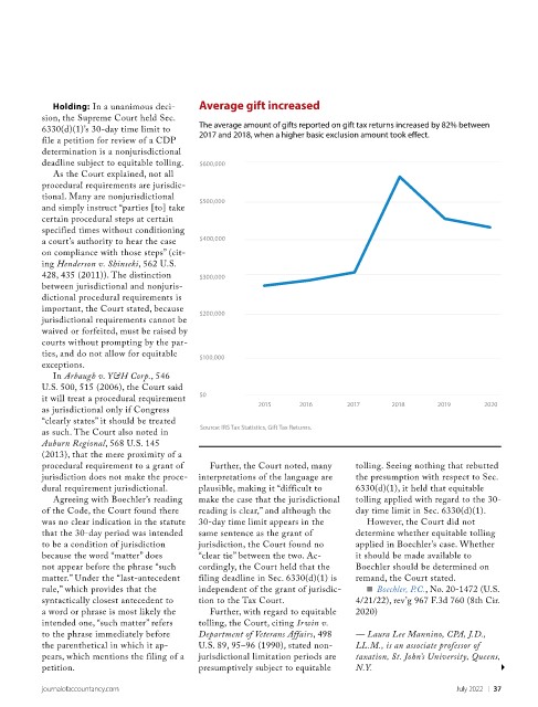 The average amount of gifts reported on gift tax returns increased by 82% between