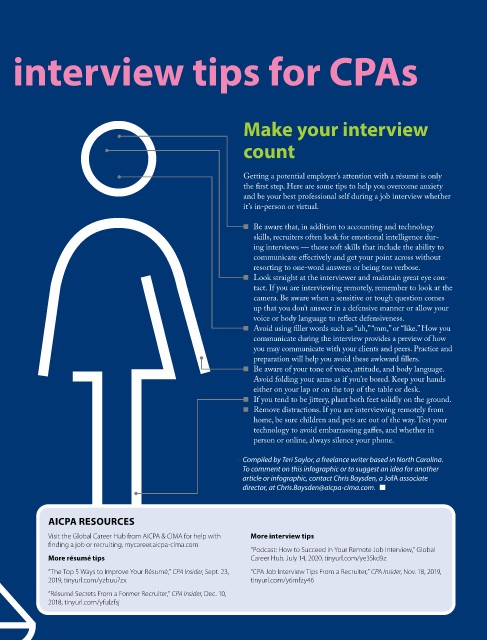 “The Top 5 Ways to Improve Your Résumé,” CPA Insider, Sept. 23, “CPA Job Interview Tips From a Recruiter,” CPA Insider, Nov. 18, 2019,