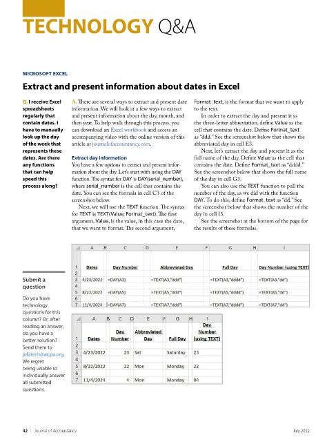 of the week that article at journalofaccountancy.com. abbreviated day in cell E3.