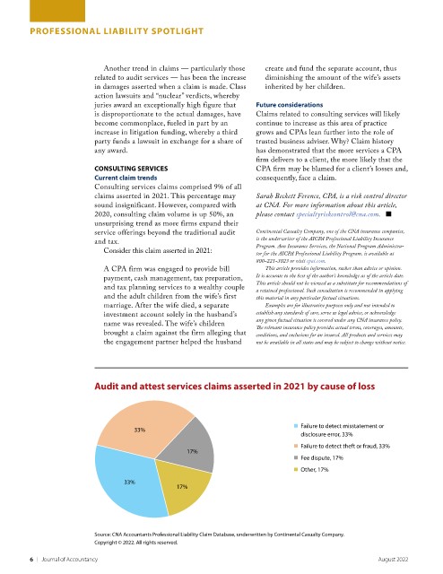 claims asserted in 2021. This percentage may Sarah Beckett Ference, CPA, is a risk control director