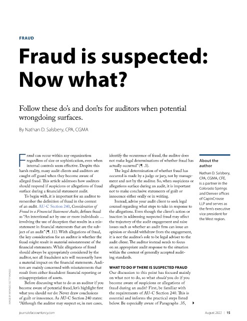 alleged fraud. This article addresses how auditors ment and not by the auditor. So, when suspicions or