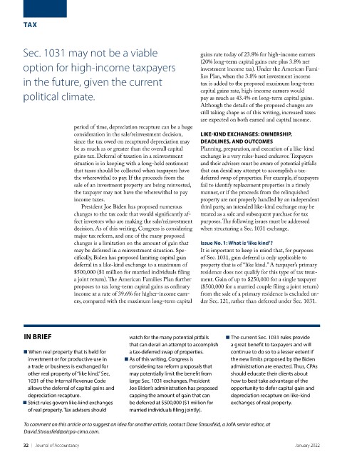 IN BRIEF watch for the many potential pitfalls ■ The current Sec. 1031 rules provide