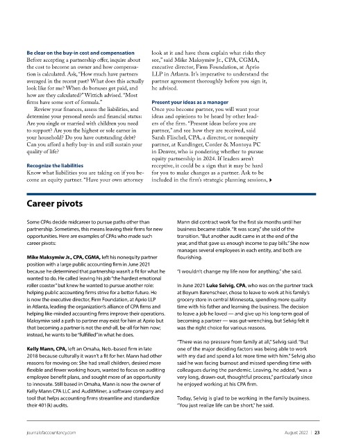 Before accepting a partnership offer, inquire about see,” said Mike Maksymiw Jr., CPA, CGMA,