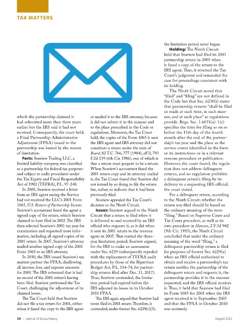 no record of the 2001 return’s having Thus, Seaview contended, the limita- partnership provides it in the manner
