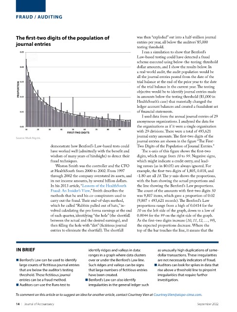 demonstrate how Benford’s Law-based tests could Two Digits of the Population of Journal Entries.”