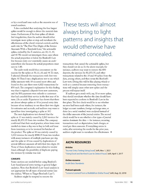 fraud, although the possibility of duplicate-paying “Journal Entry Testing Using Excel,” JofA, Nov. 1, 2021